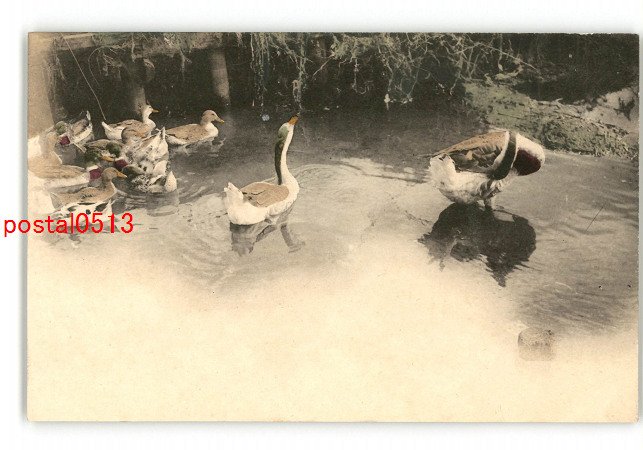 水辺のアヒル? 手彩色 *傷み有り