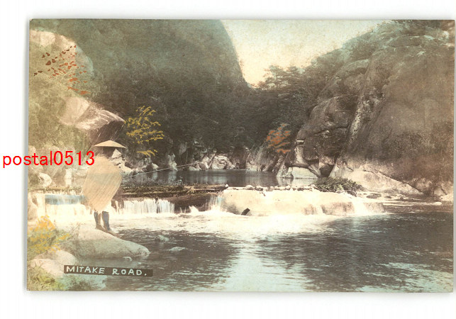 御嶽? 釣り人 手彩色 *傷み有り