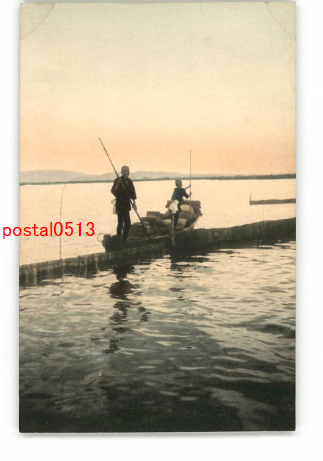日本風俗 手彩色 船の上で笑顔 *傷み有り