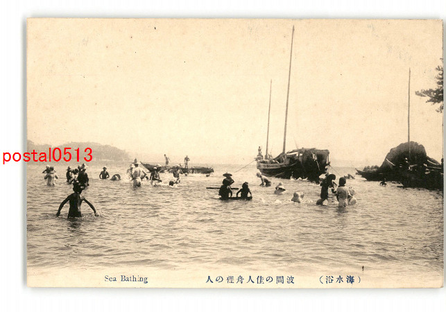 海水浴 波間の佳人舟裡の人 *傷み有り