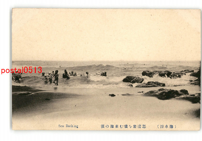 海水浴 怒涛岩を噛む東海の浜 *傷み有り
