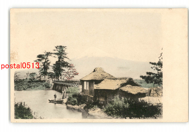 静岡 手彩色 河合橋の富士山 *傷み有り
