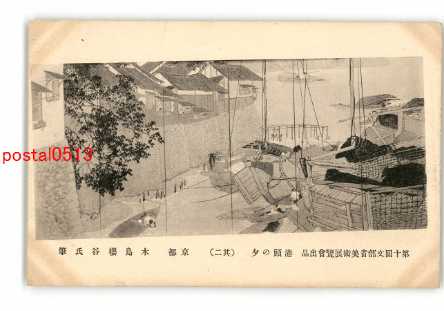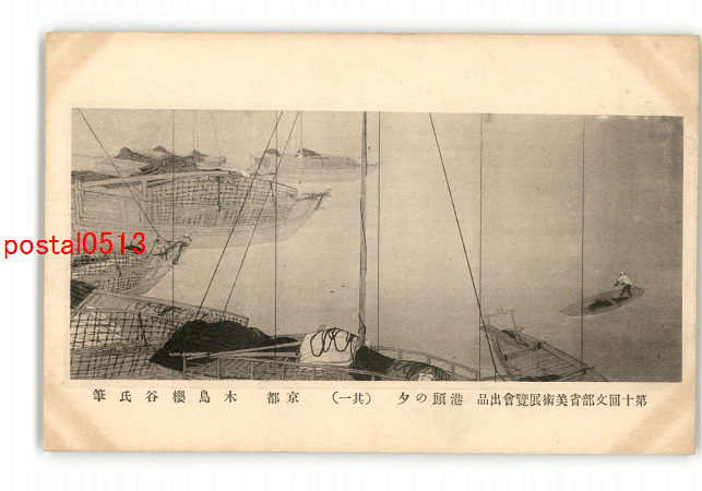 第10回文部省美術展覧会出品 港頭の夕 その2 木島桜谷氏筆 *傷み有り