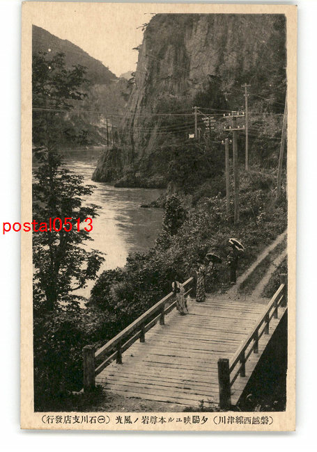 新潟 磐越西線津川 夕陽映ゆる本尊岩の風光 *傷み有り
