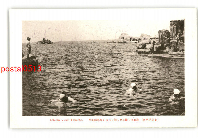 福井 東尋坊名所 巌底深く棲息せる鮑を採取の東尋坊海女 *傷み有り
