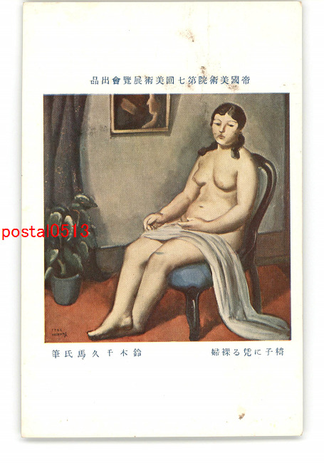 帝国美術院第7回美術展覧会出品 椅子に凭る裸婦 鈴木千久馬氏筆 *傷み有り