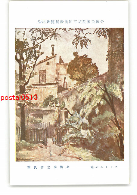 帝国美術院第5回美術展覧会出品 アトリユの庭 高橋虎之助氏筆 *傷み有り