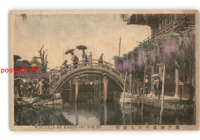 東京 手彩色 亀戸神社の女太皷橋 *傷み有り