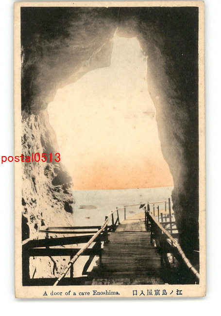 神奈川 手彩色 江ノ島窟屋入口 *傷み有り