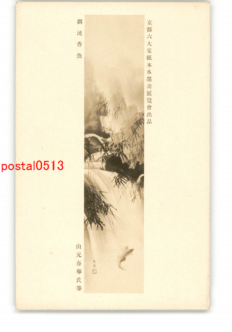 京都六大家紙本水墨画展覧会出品 澗流香魚 山元春擧氏筆 *傷み有り