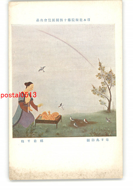 日本美術院第14回展覧会出品 母子鳥韻図 郷倉千靱 *傷み有り