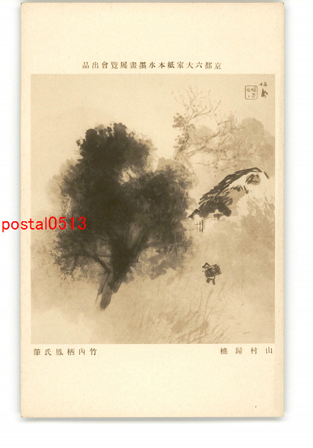 京都六大家紙水墨画展覧会出品 山村帰樵 竹内栖鳳氏筆 *傷み有り