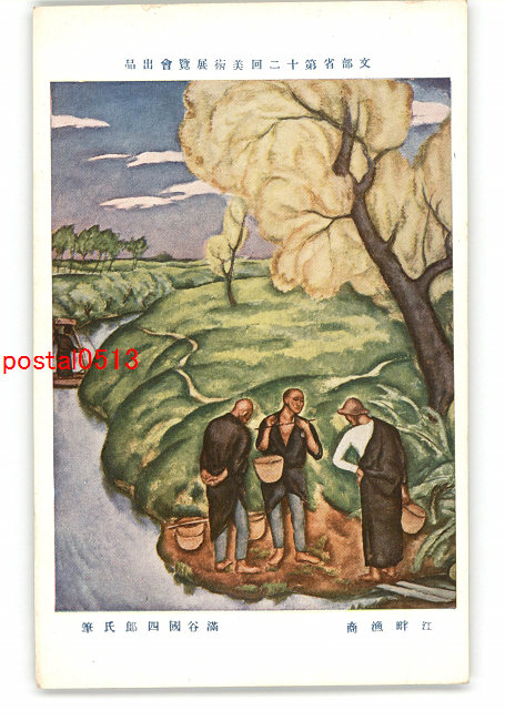 文部省第12回美術展覧会出品 江畔漁翔 満谷国四郎氏筆 *傷み有り