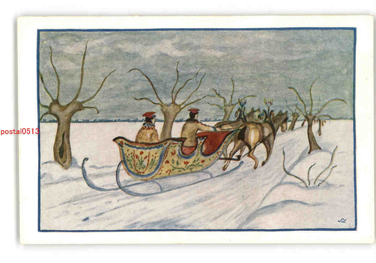豪華な雪橇 アート絵葉書 *傷み有り