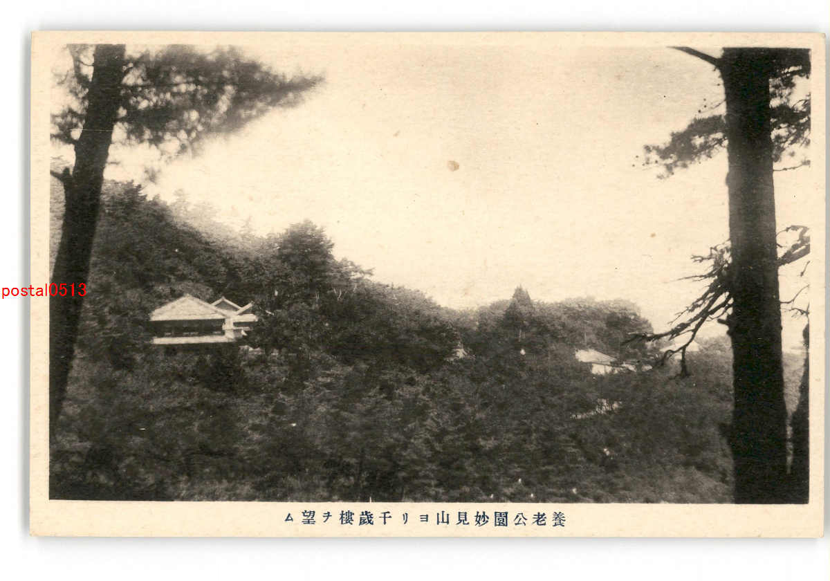 岐阜 養老公園妙見山より千歳楼を望む *傷み有り