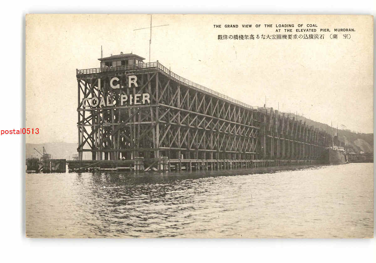 北海道 室蘭 石炭積込の重要機関宏大なる高架桟橋の偉観 *傷み有り