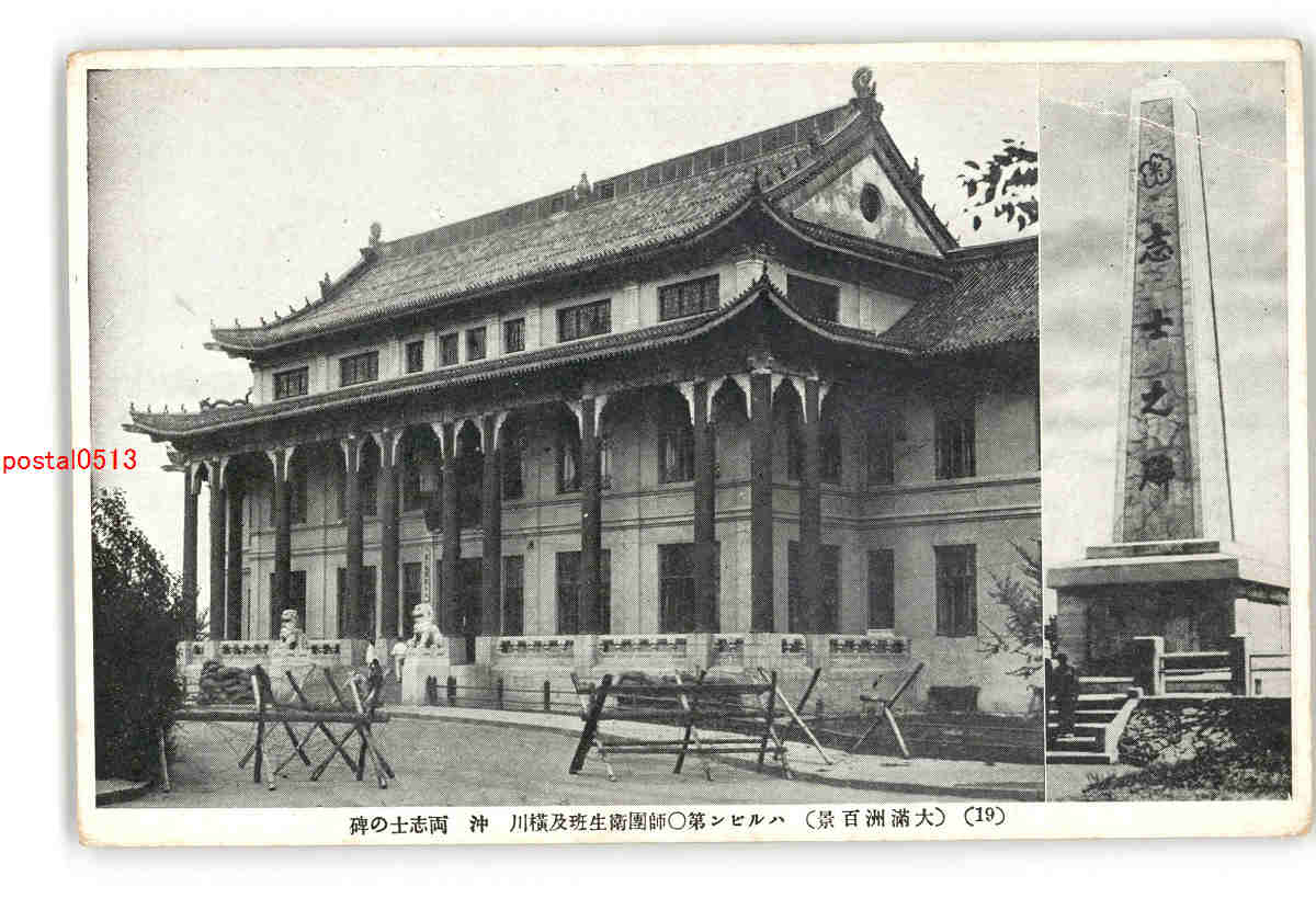 満州 大満洲百景 ハルビン第〇師団衛生班及横川 沖 両志士の碑 *傷み有り