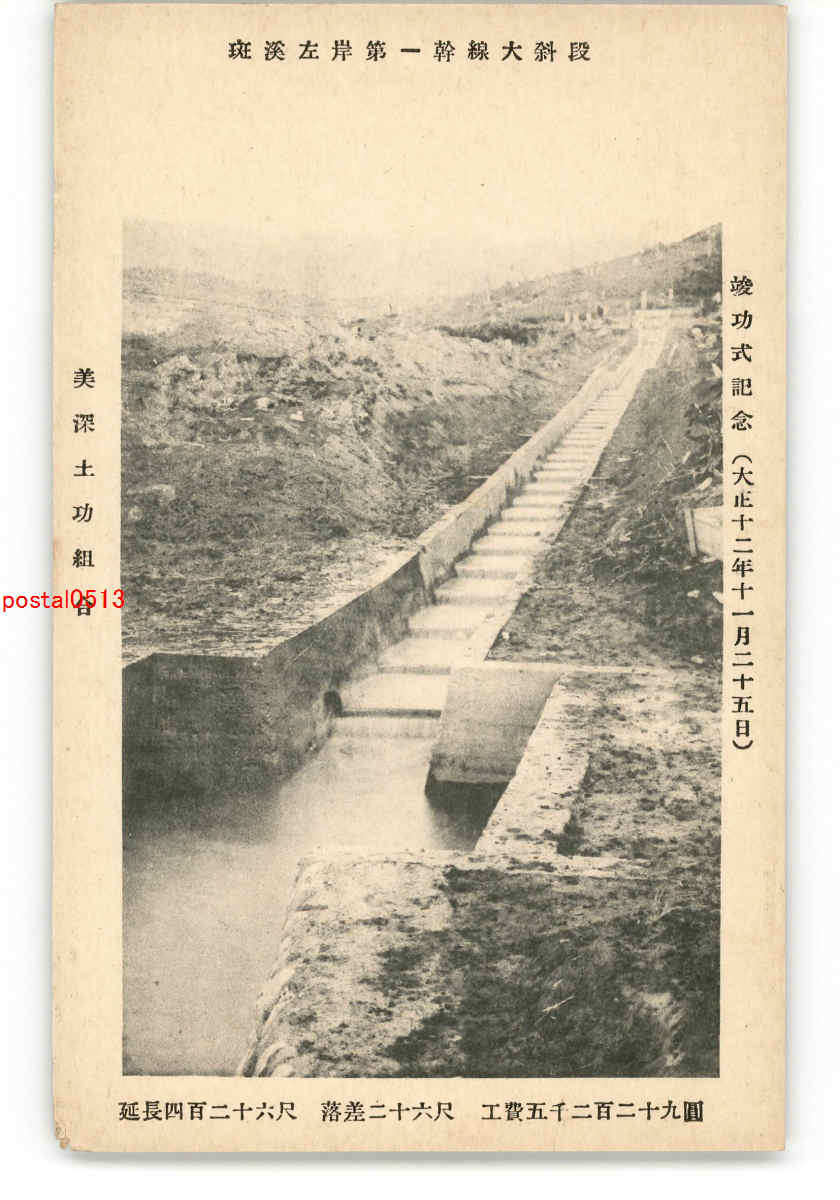 北海道 斑渓左岸第一幹線大斜段 竣功式記念 大正12年11月25日 *傷み有り