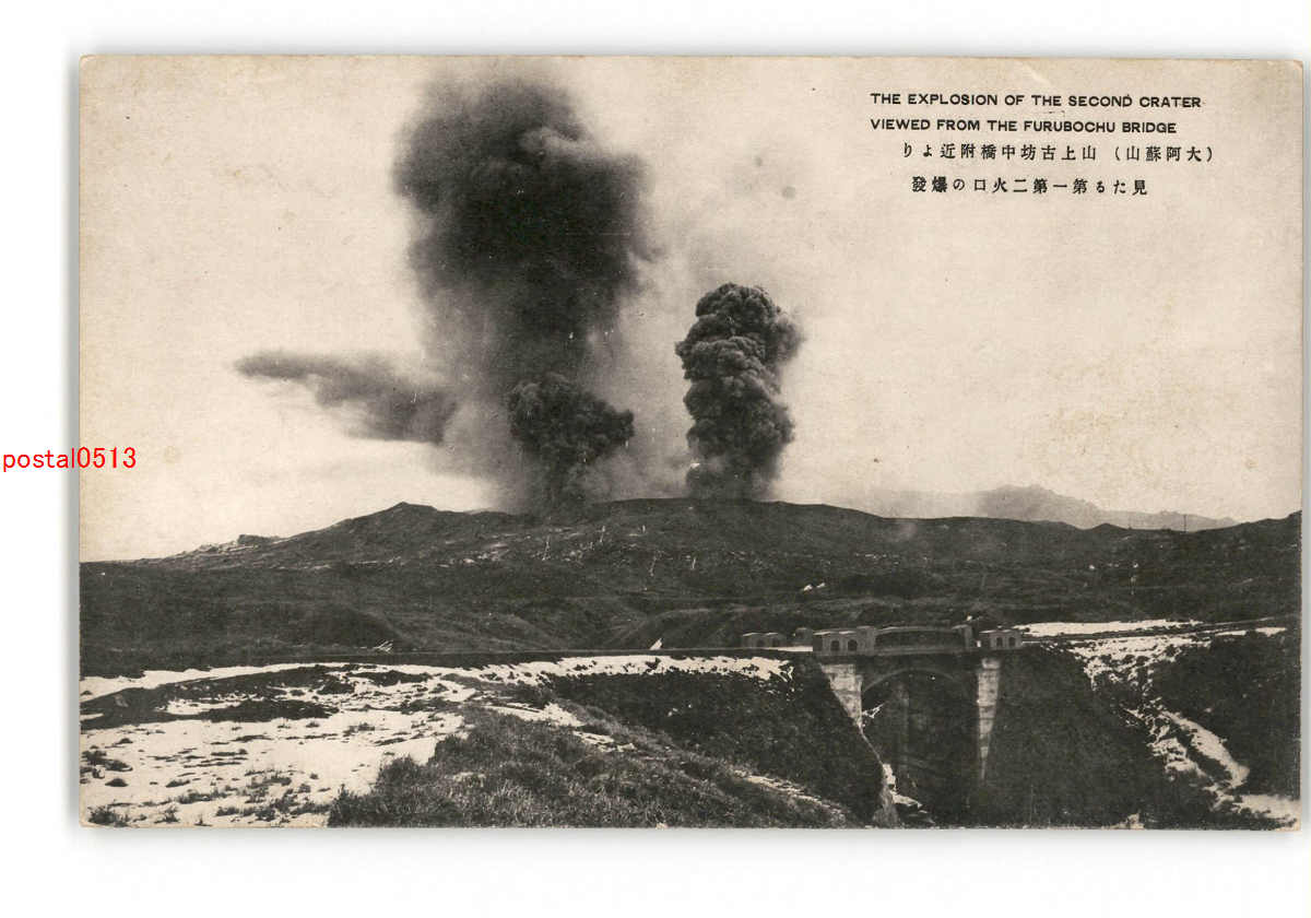熊本 大阿蘇山 山上古坊中橋附近より見たる第一第二火口の爆発 *傷み有り