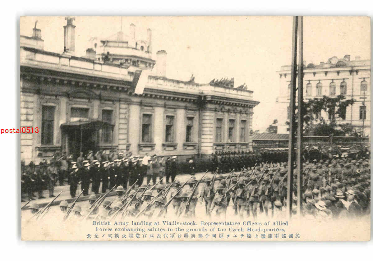 ロシア 英国陸軍浦塩上陸チエク軍司令部前連合軍代表武官敬礼交換式の光景 *傷み有り
