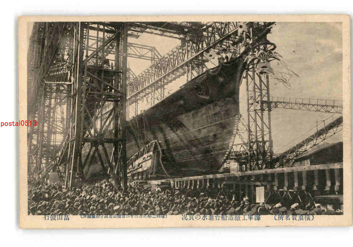 神奈川 横須賀名所 海軍工廠造船台進水の実況 *傷み有り