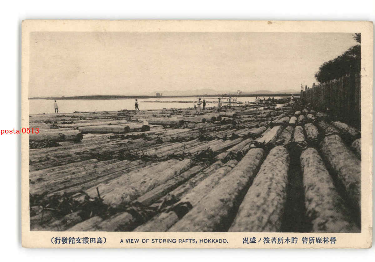北海道 営林廠所管 貯木所著筏の盛況 *傷み有り