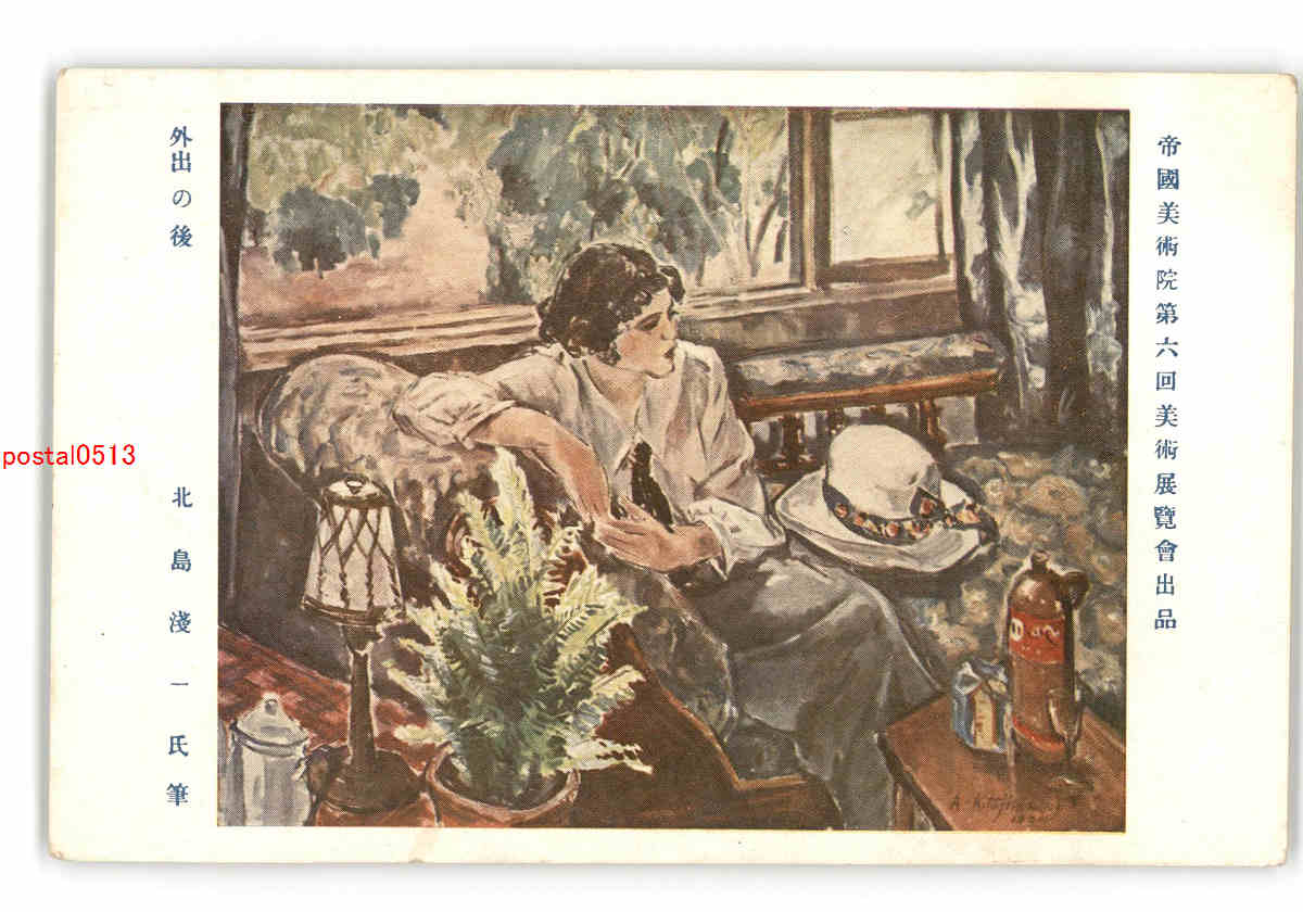 帝国美術院第6回美術展覧会出品 外出の後 北島浅一氏筆 *傷み有り