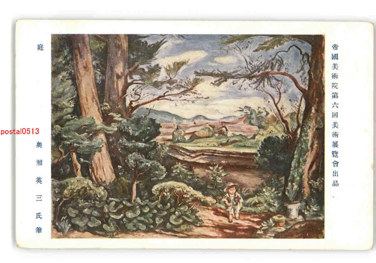 帝国美術院第6回美術展覧会出品 庭 奥瀬英三氏筆 *傷み有り