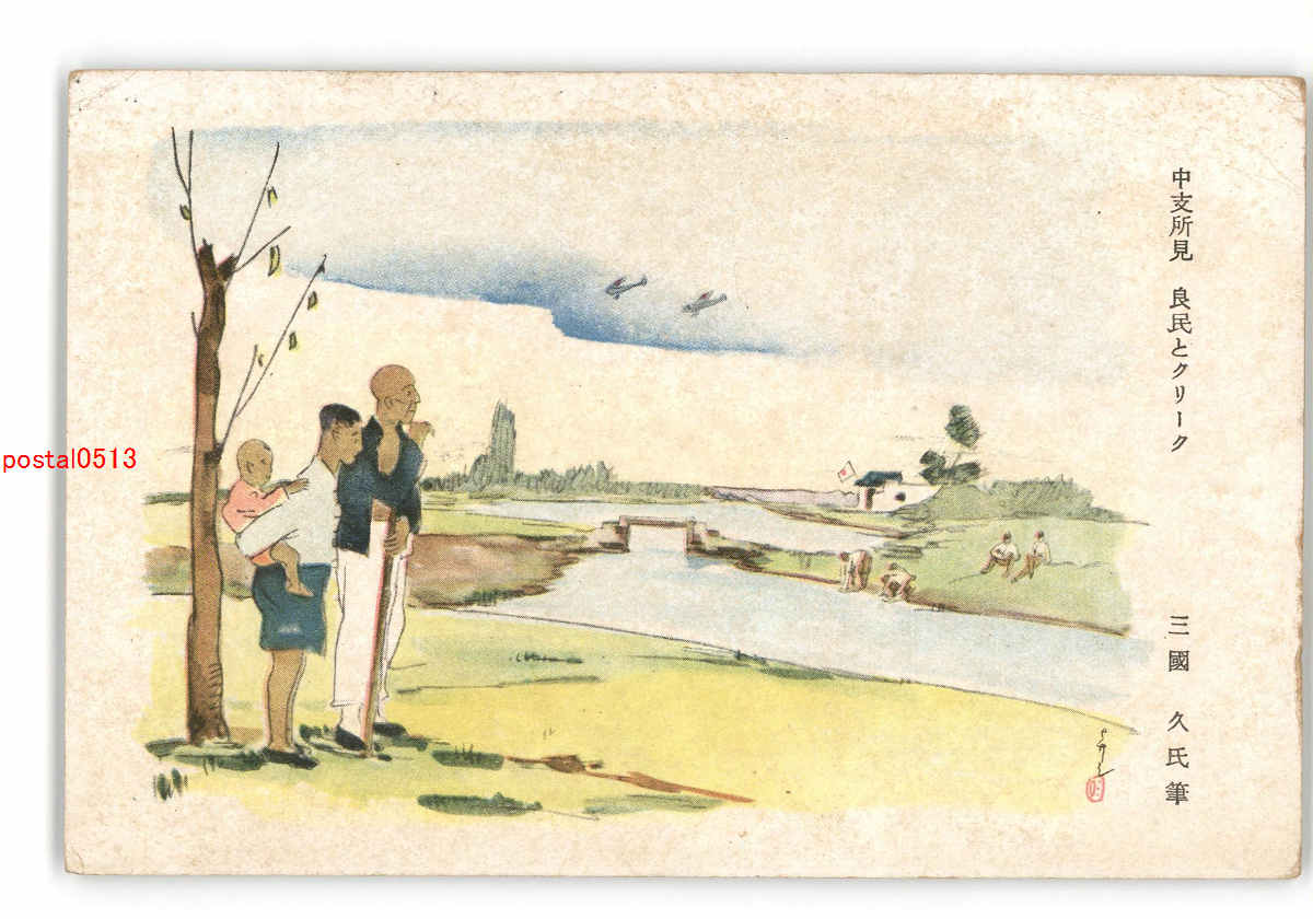 中支所見 良民とクリーク 三国久氏筆 *傷み有り