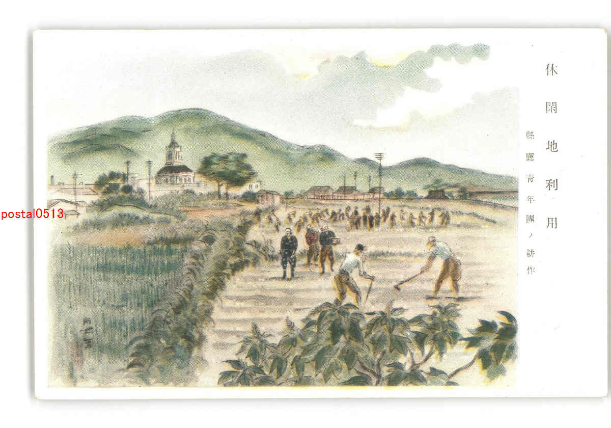 滋賀 休閑地利用 県庁青年団の耕作 アート絵葉書 *傷み有り