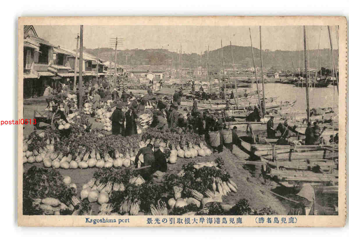 鹿児島 鹿児島名勝 鹿児島港海岸大根取引の光景 *傷み有り