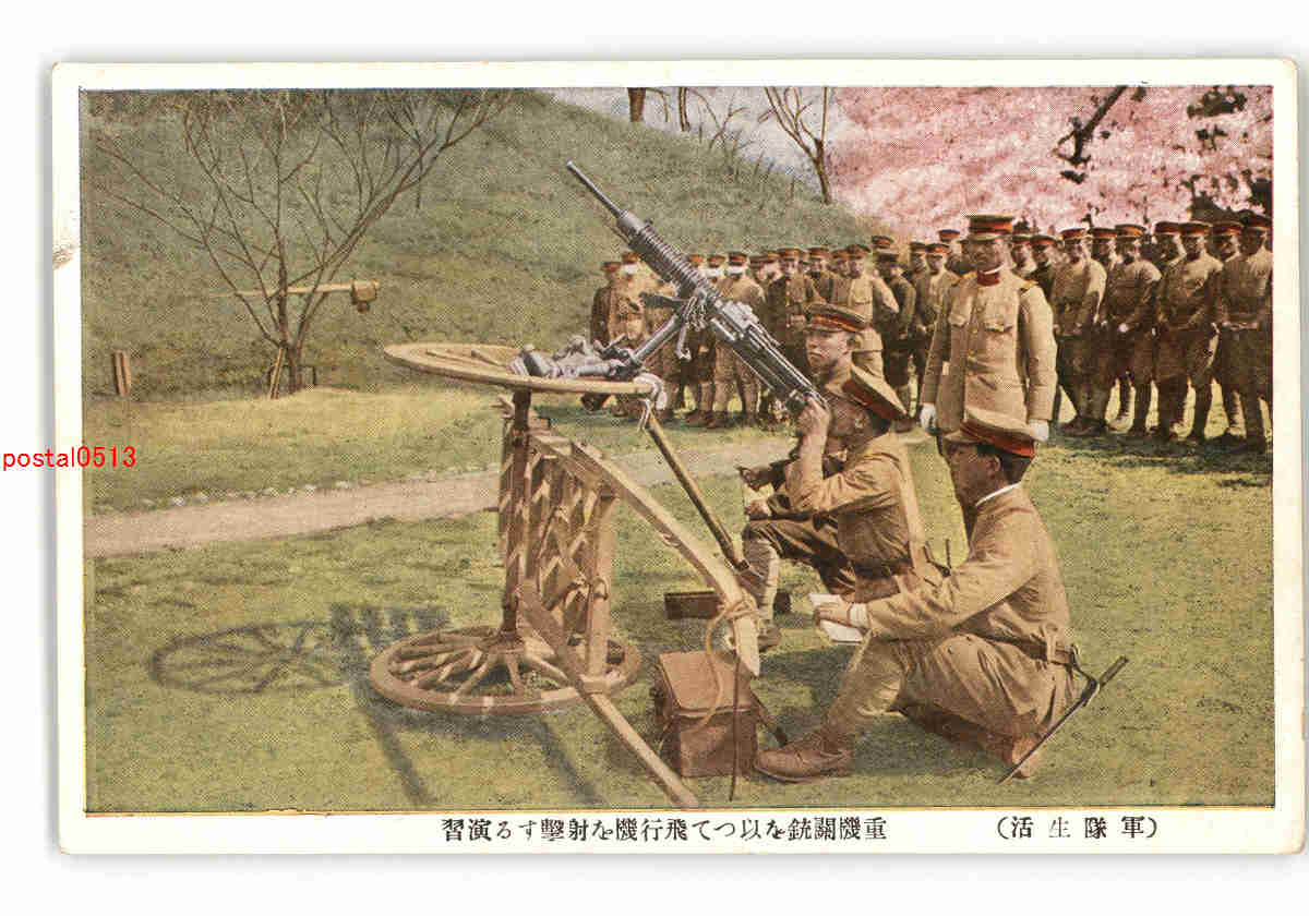 軍隊生活 重機関銃を以つて飛行機を射撃する演習 *傷み有り