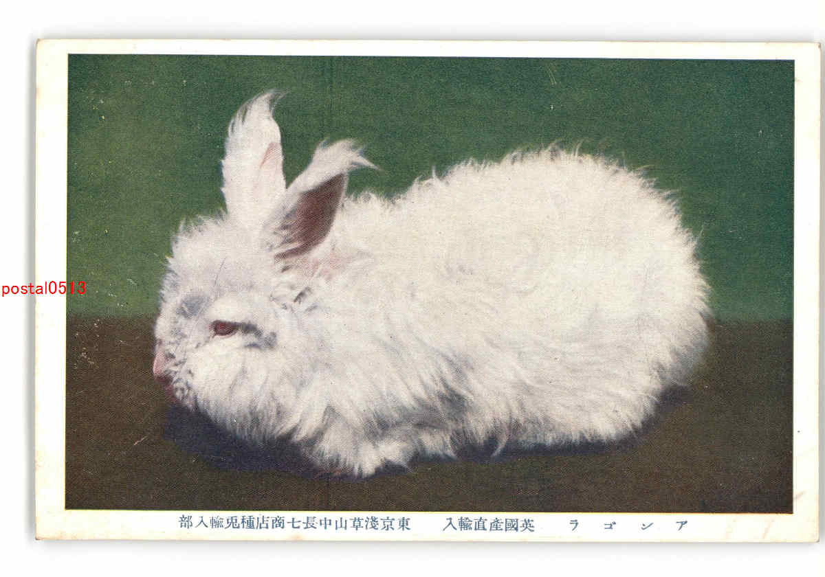 兎絵葉書 アンゴラ 英国産直輸入 東京浅草山中長七商店店種兎輸入部 *傷み有り