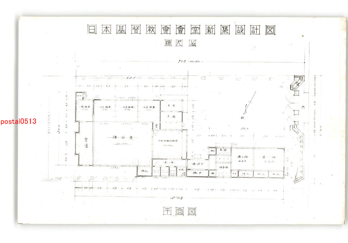 日本基督教会会堂新築設計図 平面図 *傷み有り