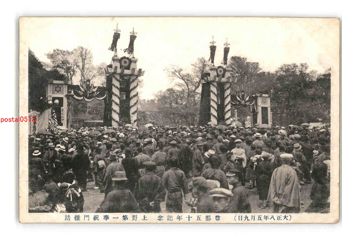 東京 大正8年5月9日 尊都50年記念 上野第一奉祝門雑踏 *傷み有り