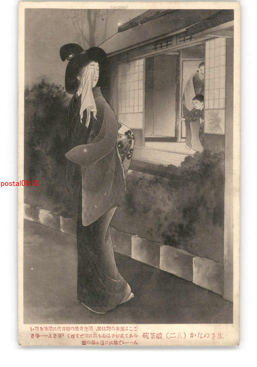 物語絵葉書 生さぬなか その2 破茶碗 *傷み有り