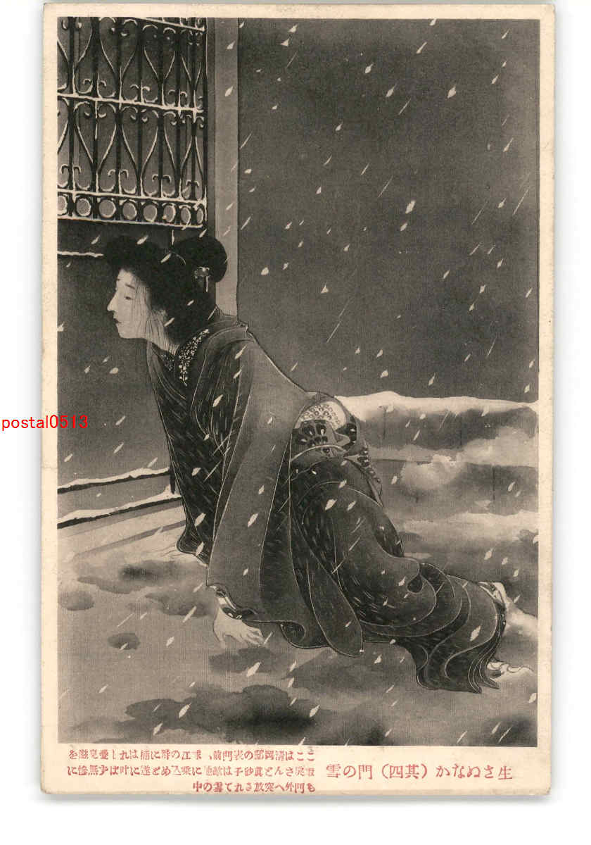物語絵葉書 生さぬなか その4 門の雪 *傷み有り