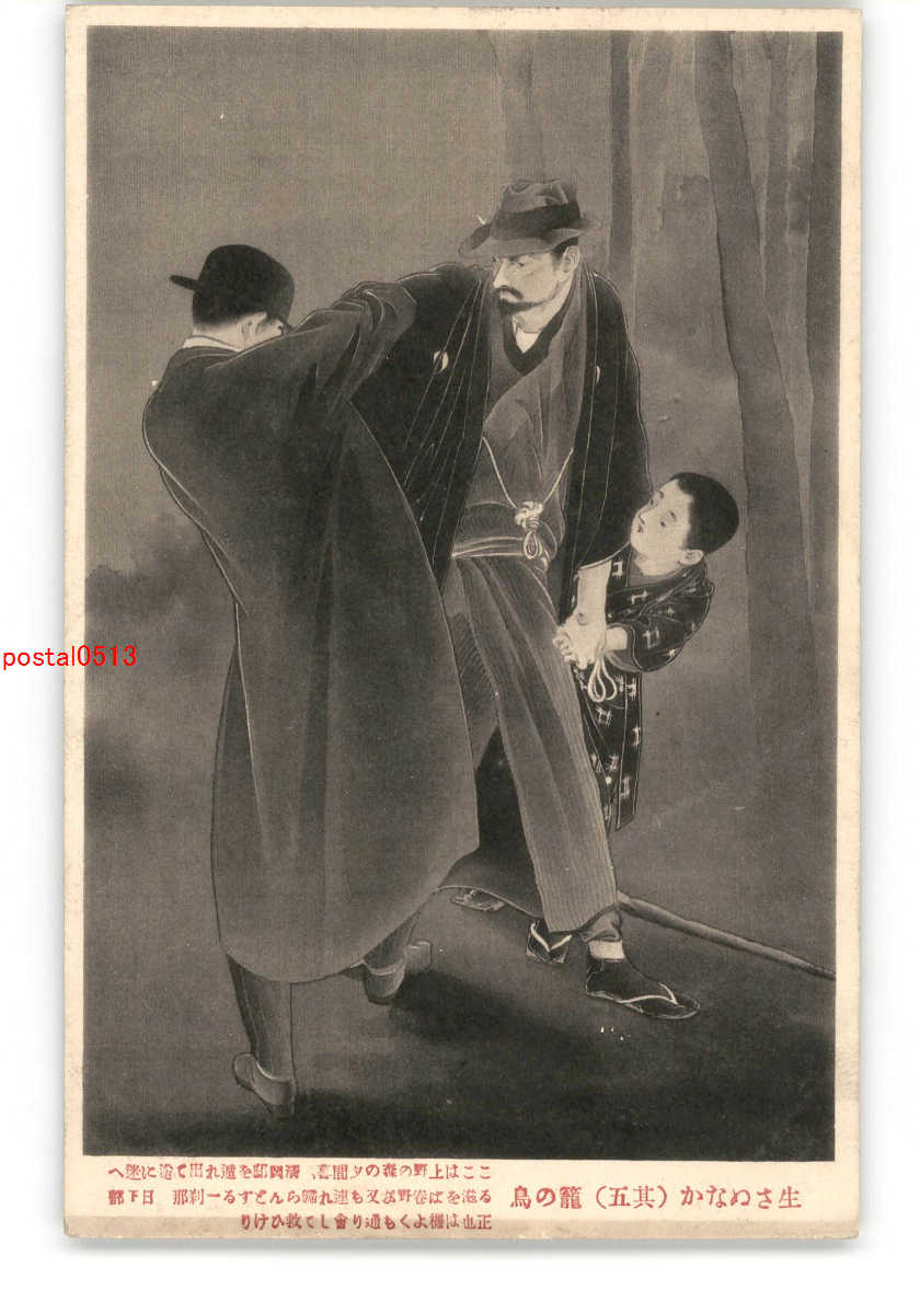 物語絵葉書 生さぬなか その5 籠の鳥 *傷み有り