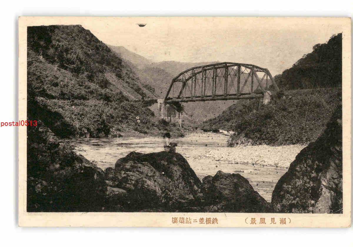 山形 瀬見風景 鉄橋並に鮎簗場 *傷み有り