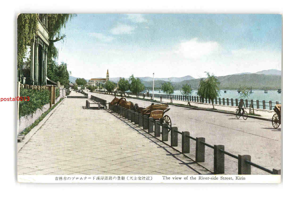 満州 吉林市のプロムナード護岸道路の景観 天主堂附近 *折れ有り *傷み有り