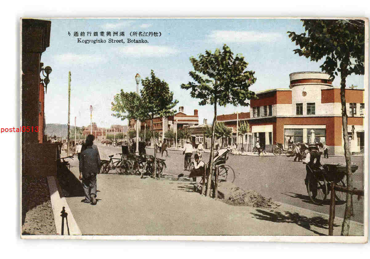 満州 牡丹江名所 満洲興業銀行前通り *アルバム跡有り *傷み有り