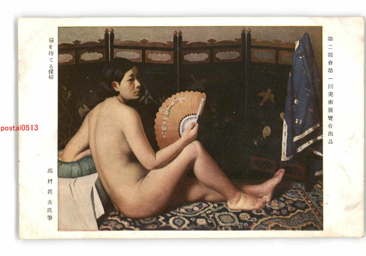 第二部会第一回美術展覧会出品 扇を持てる裸婦 高村真夫氏筆 *アルバム跡有り *傷み有り
