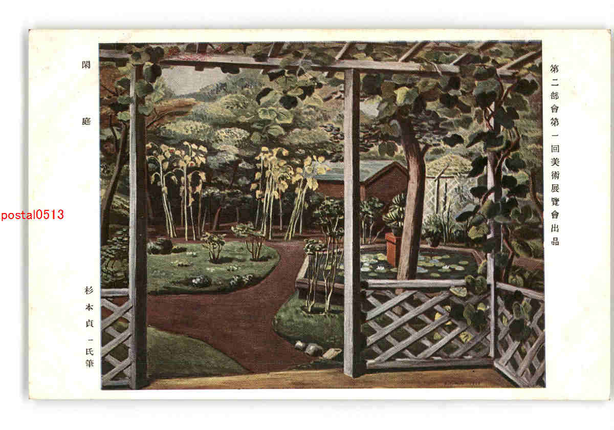 第二部会第一回美術展覧会出品 閑庭 杉本貞一氏筆 *アルバム跡有り *傷み有り