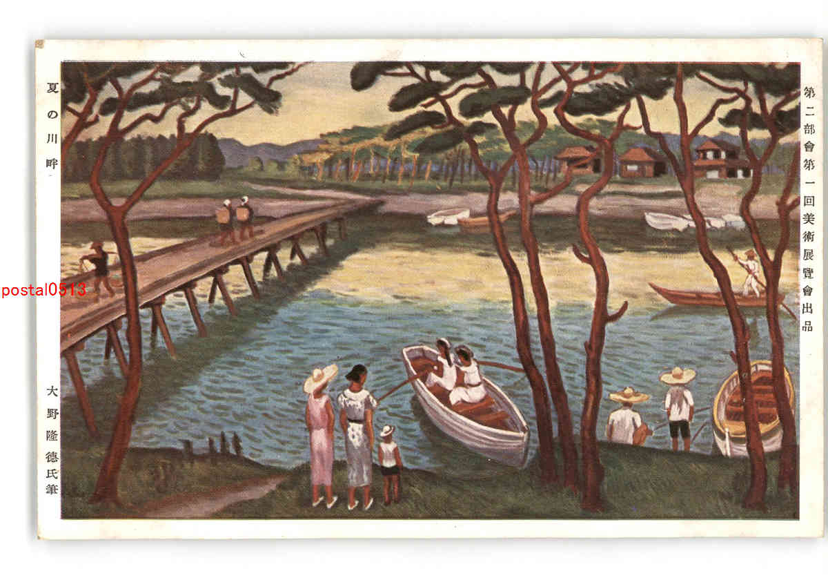 第二部会第一回美術展覧会出品 夏の川畔 大野隆徳氏筆 *アルバム跡有り *傷み有り