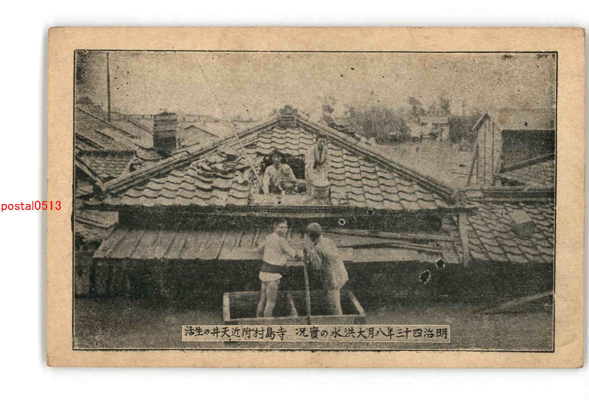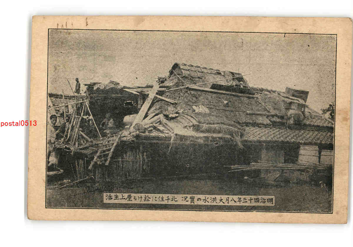 東京 明治43年大洪水の実況 北千住に於ける屋上生活 *傷み有り
