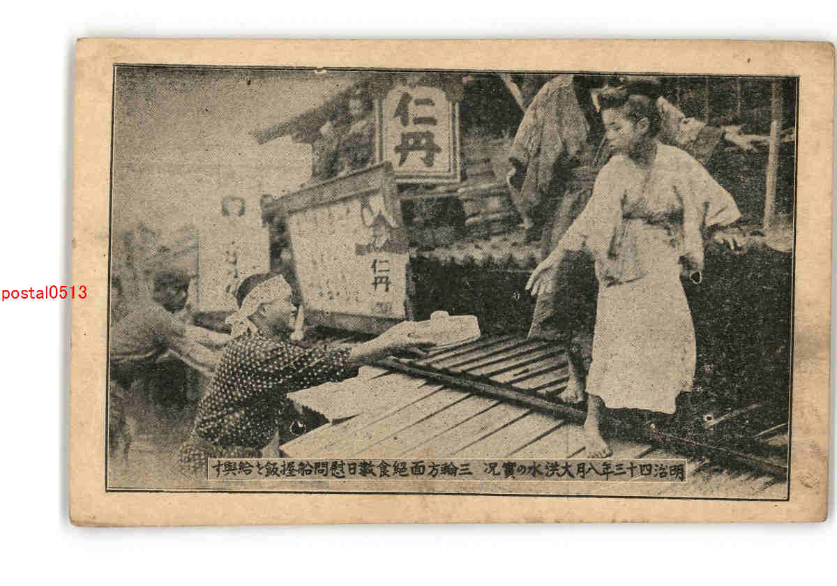 東京 明治43年8月大洪水の実況 三輪方面絶食数日慰問船握飯と給与す *傷み有り
