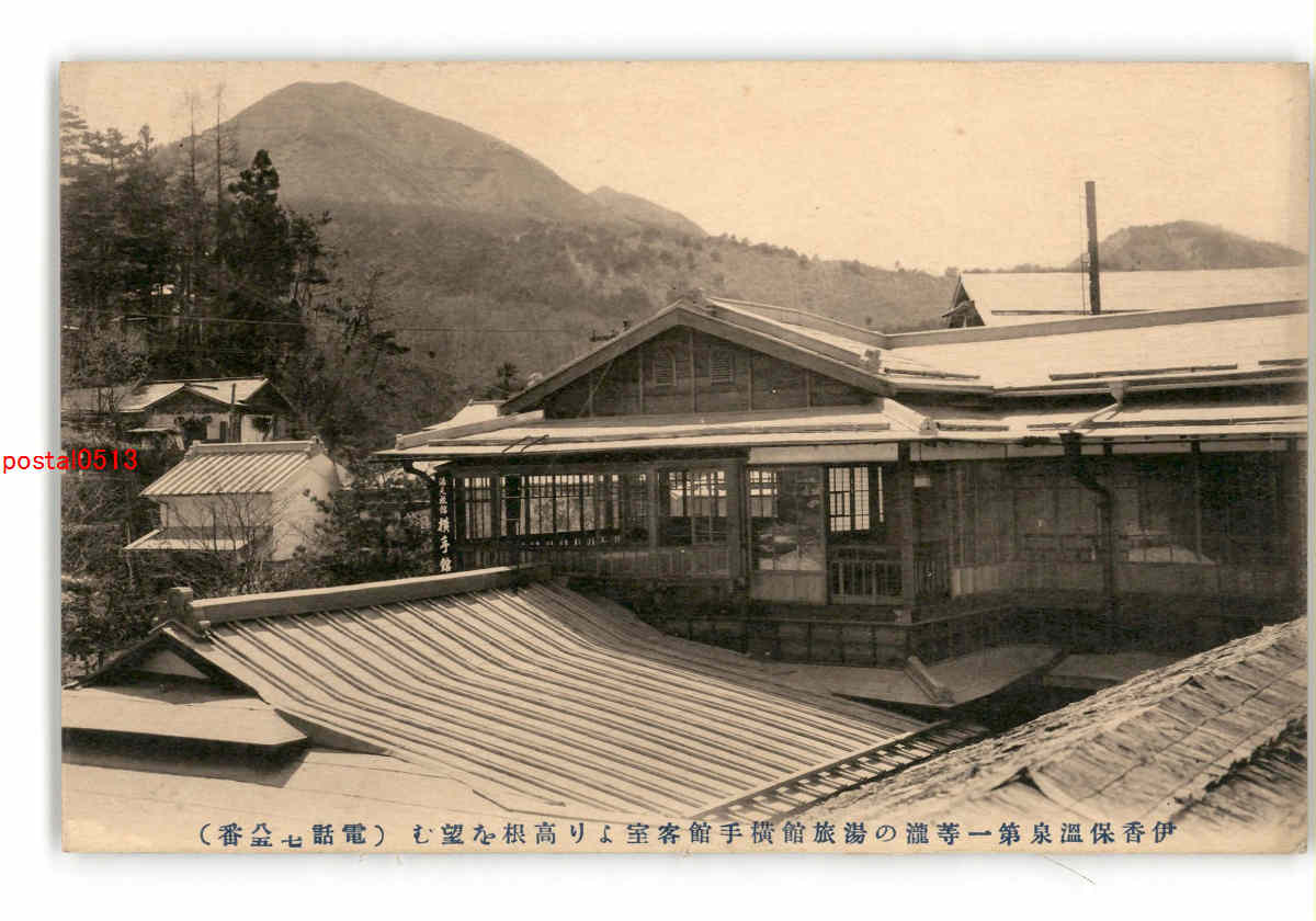 群馬 伊香保温泉第一等瀧の湯旅館横手館客室より高根を望む *傷み有り