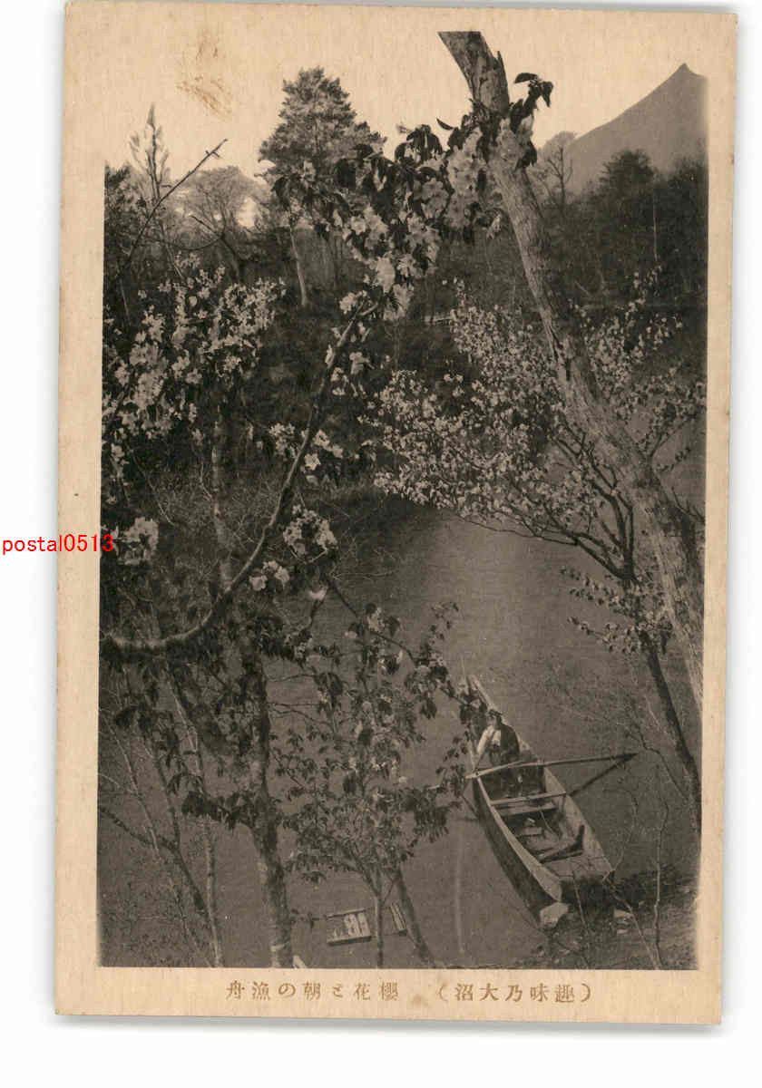 北海道 趣味乃大沼 桜花と朝の漁舟 *傷み有り