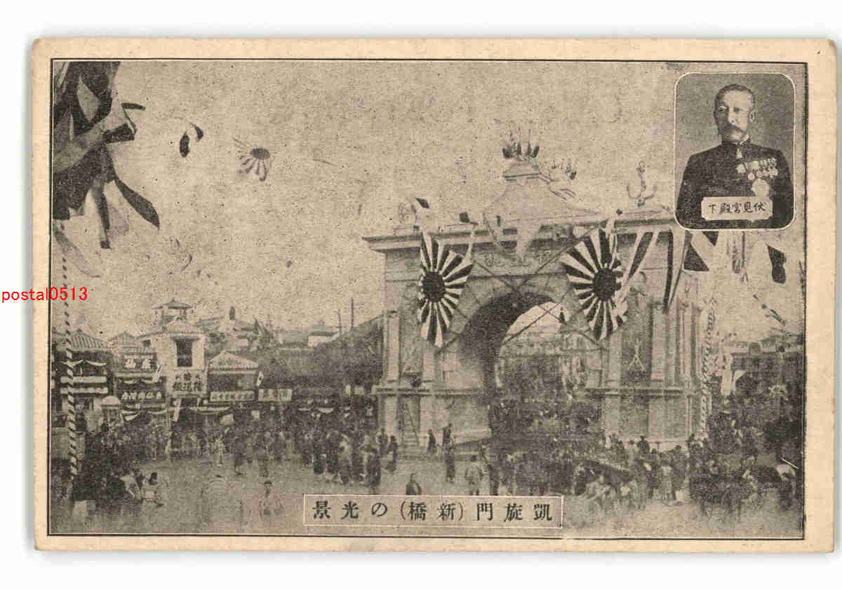 東京 凱旋門 新橋 の光景 伏見宮殿下 *アルバム跡傷み有り