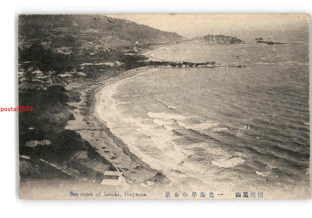 神奈川 相州葉山 一色海岸の全景 *アルバム跡傷み有り
